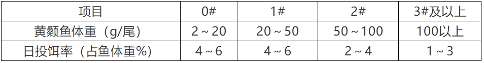 ? 根据黄颡鱼规格及数量,参考投饵参考表中推算投饵量,再根据天气、水温、水质、饵料台观察情况、黄颡鱼摄食及健康状况等予以适当调整。